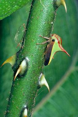 角蟬身體上長(zhǎng)著刺狀物,看上去非常像荊棘,這種巧妙的偽裝可以避免被掠食者發(fā)現(xiàn)。