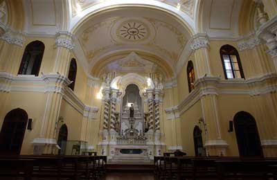 澳門圣若瑟修院教堂(1903) 明黃的巴洛克式建筑,承襲了文藝復興后的風格,裝飾華麗,四周景觀與之呼應,配有廣場、庭院、噴泉等。這座教堂原建于1758 年,后來重建過,為世界文化遺產(chǎn)。