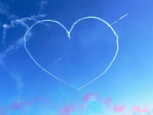英國特技飛行隊在威爾士上空經(jīng)過留下的“桃心云”