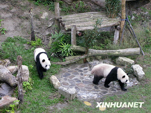當(dāng)日,贈臺大熊貓“團(tuán)團(tuán)”“圓圓”首次戶外公開亮相!皥F(tuán)團(tuán)”“圓圓”于2008年12月來到臺北市立動物園,并在2009年1月26日正式與臺灣民眾見面。新華社記者 王妍攝