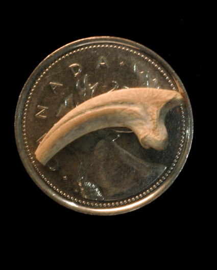 這張3月17日由加拿大西部艾伯塔省卡爾加里大學發(fā)布的照片顯示了“迷你”恐龍化石的第二腳趾上如刀片一般的利爪。新華社/法新
