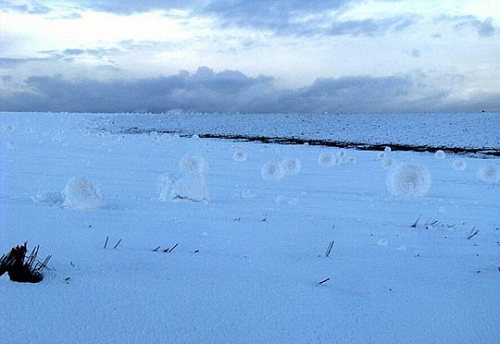 樣子極像白色干草卷的雪卷最高能達(dá)2英尺,這些被風(fēng)吹卷起的雪堆,通常是圓柱形,兩頭是凹面。