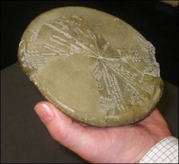 150年前一塊圓形泥土碑匾在伊拉克境內(nèi)發(fā)現(xiàn),該地區(qū)是古代亞述(西南亞洲底格里斯河流域的古國(guó))首都尼尼微,碑匾上是蘇美爾人使用象形文字描繪的星空?qǐng)D像和一些古代文字。數(shù)十年以來(lái)科學(xué)家們都未曾解釋這個(gè)圓形泥土碑匾上的內(nèi)容。2008年,布里斯托爾大學(xué)兩位科學(xué)家——艾倫-邦德(Alan Bond)和馬克-亨普塞爾(Mark Hempsell)最終成功地翻譯了上面的象形文字,這塊碑匾記錄了一位蘇美爾天文學(xué)家的星空筆記簿,并提及此次星空描繪記錄時(shí)間是公元前3123年(羅馬儒略歷)6月29日。