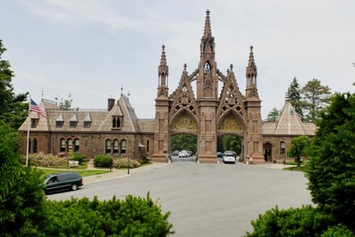 在這個478英畝的土地上分布著60萬座墓地,對于那些游覽紐約市的旅客來說,這個地方有著很大的吸引力。像拉雪茲神父公墓,在那里曾經有過一場競選墓地的活動,包括一些名人遺體搬遷和捐贈墓碑等活動。不像拉雪茲神父公墓,這項工作并沒有真正實施。1883年布魯克林大橋建成,使人們來這里更方便,從1838年這里對外開放時起到1883年,這里才有了固定居民。然而,那些已經在這里扎下根的居民還有很大的空間這樣做。在那里還有上百個裝飾華麗的墓地,不管是名人還是普通人,這里都大開方便之門。在那里可以找到那些在19世紀后期(對于紐約市人這是一個多產的時期)出名的紐約人。在那里也有一些戰(zhàn)爭紀念碑,其中有個方尖石塔,里面供奉著在布魯克林劇場火災中喪生的約300名受難者中的103位。