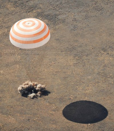 5、聯(lián)盟號(hào)宇宙飛船降落 在此美國(guó)宇航局提供的照片中,俄羅斯一艘聯(lián)盟號(hào)宇宙飛船在降落傘的減速下慢慢降落,著陸在哈薩克斯坦沙漠中,這標(biāo)志著為期6個(gè)月的國(guó)際空間站任務(wù)宣告結(jié)束。此飛船上載有美國(guó)太空游客查爾斯·西蒙尼、美國(guó)宇航員邁克爾·芬克和俄羅斯工程師尤里·龍加庫(kù)夫。這次是西蒙尼再度上太空旅游歸來(lái),他經(jīng)12天太空旅行之后成功返回地面。
