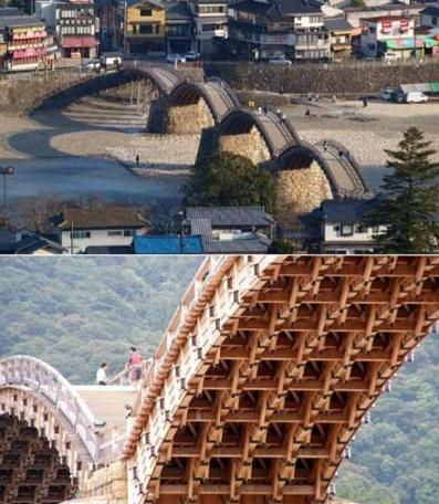 錦帶橋位于日本山口縣巖國(guó)市的錦川河上,是一座五孔石墩木拱橋,跨度27.5米,全長(zhǎng)193.3米,寬5米,1673年建造完成,是日本三大名橋之一。因其景致而被稱為“錦帶橋”。