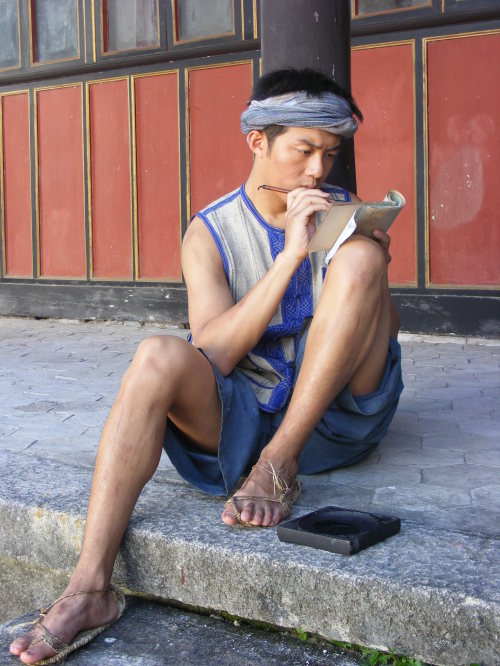 玉道的男主人公端詳?shù)陌缪菡咝氯恕顫射h在電影劇照。