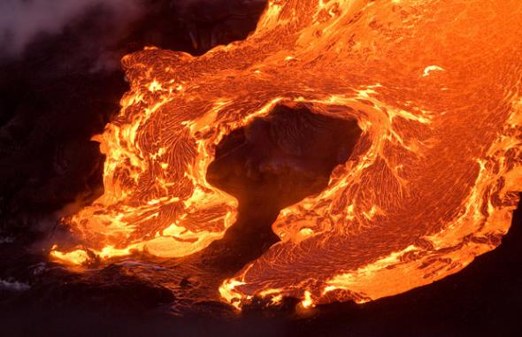 在夏威夷捕捉到的熔巖流動的壯觀畫面