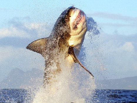 大白鯊是經(jīng)常浮出水面窺視獵物的少數(shù)鯊魚之一。據(jù)說,這可以讓它們在捕食時嗅覺更靈敏。 一只典型的大白鯊體長16英尺(4.88米),重2400英磅(1089公斤)。它們獨自捕食,有時甚至會殺死同類(在同類侵入它們的領地時)。和很多其他鯊魚一樣,它們有幾排鋸齒狀的備用齒,可替補任何斷裂或已鈍化的牙齒。