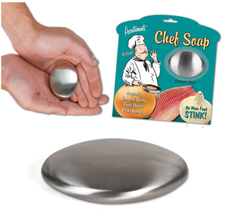 蠟燭已經(jīng)點(diǎn)好了,飯桌也收拾好了,可口的飯菜就要端上桌了,剛做完飯的你,手上帶著大蒜、洋蔥或者魚腥味。這時(shí)候,你家門鈴響了,該用什么去掉手上難聞的氣味兒呢?拿普通肥皂用力搓洗效果也不一定好。答案是用一塊兒不銹鋼碟子。你所要做的就是一邊沖著水,一邊把手在這個(gè)碟子上摩擦。這樣可以洗掉你手上的難聞氣味,讓你的手聞起來更像是……呃,手。