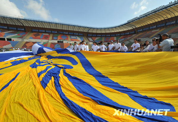 9月17日,人們在耶路撒冷的泰迪足球場展開世界最大的旗幟。