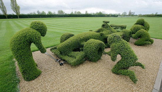 英國《每日郵報》報道,威廉姆斯F1車隊總部的園藝工人近日用花木修剪出了“綠色賽車”。