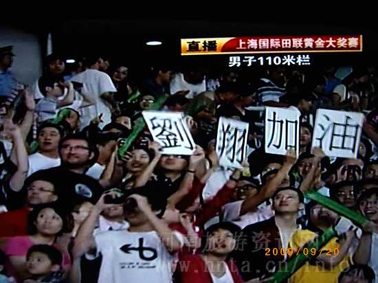 劉翔現(xiàn)身上海國際田聯(lián)賽男子110米欄現(xiàn)場,觀眾為之歡呼、加油!