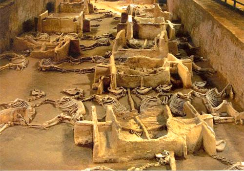 4、東周天子墓 這是一座在地底沉睡了近三千年的東周王陵遺址,文物工作者在此發(fā)掘了目前中國(guó)已發(fā)現(xiàn)的東周時(shí)期規(guī)格最高的車馬坑遺跡——由6匹馬駕馭的“天子之乘”。作為夏、商、周的重要遺存,“天子駕六”保存之完好、規(guī)模之宏大,在世界上獨(dú)一無(wú)二。 有文物專家認(rèn)為,“天子駕六”極有可能是洛陽(yáng)的第二個(gè)“龍門”!中國(guó)的第二個(gè)“兵馬俑”!