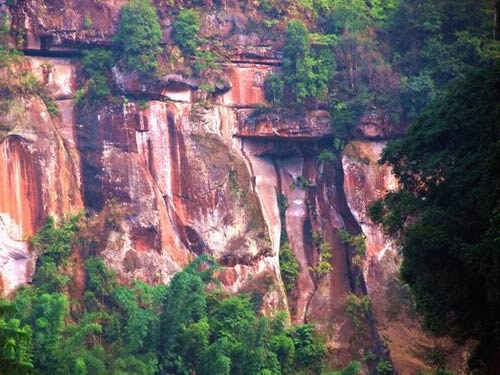 赤水的丹霞地貌,以其艷麗鮮紅的丹霞赤壁,拔地而起的孤峰窄脊,儀態(tài)萬千的奇山異石,巨大的巖廊洞穴和優(yōu)美的丹霞峽谷與綠色森林、飛瀑流泉相映成趣,形成很高的旅游觀賞價值,令游人傾倒。在赤水風景名勝區(qū),最為獨特,最受游人稱譽的丹霞景觀有金沙溝赤壁神州、香溪湖萬年靈芝、四洞溝渡仙橋、丙安天生橋、天臺山紅巖絕壁、石鼎山奇觀、復興轉石奇觀、長嵌溝丹霞峽谷、十丈洞丹霞巖穴、金沙溝甘溝峽谷和硝巖洞穴等十多處。雨過天晴,金色的陽光照在丹巖上,把紅色的巖石映襯得格外艷麗,形成紅巖、綠樹、銀瀑、清泉相映成趣美麗風,人行其間,感到精神振奮,心曠神怡。