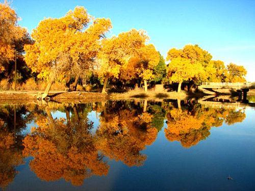額濟納旗的胡楊林大部分都分布在鎮(zhèn)東南部一道橋至八道橋一帶,要想過足胡楊癮,就得舍得花上一兩天的時間,徒步從一道橋走到八道橋!沿途每一道橋的風景各有千秋,隨時進入眼簾的都是一幅美麗的風景畫。而胡楊樹則靜靜地佇立在橋周圍,陽光下,大片金色的胡楊樹葉襯著湛藍的天空,絢麗而鮮明。到了八道橋,還能遠眺巴丹吉林沙漠,這是曾被《中國國家地理》評價為最美的沙漠!你也可以選擇一個黃昏時分走近胡楊林,夕陽下,遠處是溫順的沙漠,眼前是沉靜的胡楊,有的仍枝繁葉茂,也有的葉已落盡,或仰天長嘯,或俯身頷首,這種生命的堅持和毅力仍會讓人失聲驚嘆。(21CN旅游)