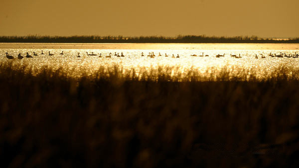 一些大天鵝在濕地水面上棲息(11月3日攝) 。新華社記者范長國攝