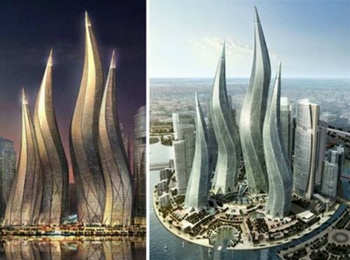 是大型“瀉湖”開(kāi)發(fā)項(xiàng)目最引人注目的建筑。該塔和該開(kāi)發(fā)區(qū)都是由建筑設(shè)計(jì)公司TVS設(shè)計(jì)的。四座塔從54層到97層大小不一,設(shè)計(jì)靈感源于火焰和燭光的晃動(dòng)。