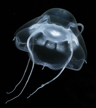 科學家在2009年12月表示,他們從2002年的標本中發(fā)現(xiàn)了一個常見的水母種類——學名narcomedusa的新物種,并在2005年又確認了數(shù)百個,圖中所示便是在2005年發(fā)現(xiàn)的。蒙特瑞半島學院生物學家拉斯科夫表示,科學家在如此常見的水母群中發(fā)現(xiàn)新的種類,表明我們對北極的了解是多么有限。他補充說,水母是地球上科學家了解最少的動物之一:“在動物世界,它們看上去就像‘外星人’。