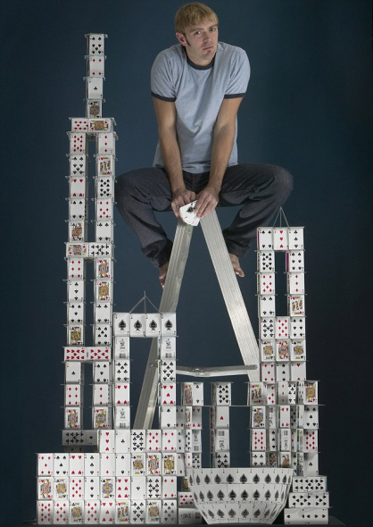 世界最大的紙牌屋:由美國男子布萊恩-伯格在德州達拉斯市創(chuàng)造,高度達到驚人的7.86米。