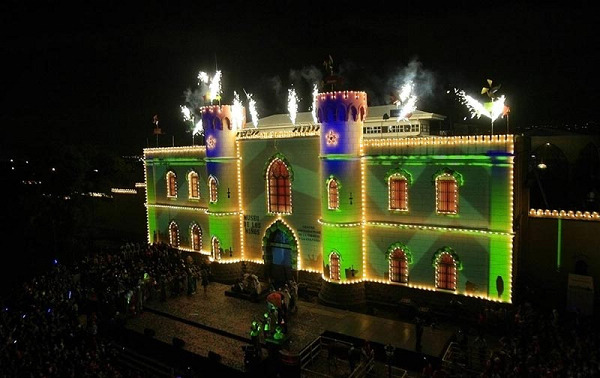 人們聚集在由500多盞燈照亮的加利福尼亞州圣何塞的兒童博物館外