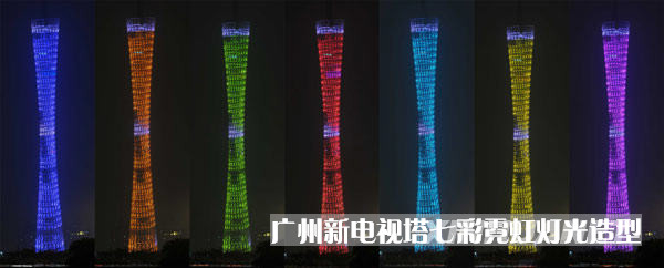 這組拼版照片顯示的是1月1日凌晨廣州新電視塔的七彩霓虹燈光造型。