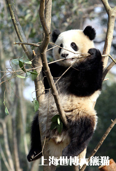 資料圖片:一只“世博大熊貓”在隔離區(qū)室外活動場內(nèi)的樹上玩耍(1月15日攝)。新華社記者凡軍攝