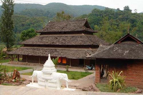游在娜允,勐外土司避暑山寨不可不去,那里依山傍水,山泉縱橫,是孟連歷任土司夏季避暑的好去處。大金塔也是一處不錯的去處,它是滇西南地區(qū)最大的金飾佛塔,整座塔體由8個附塔環(huán)抱一個主塔組成,內(nèi)供大型金色佛像,極其壯觀。