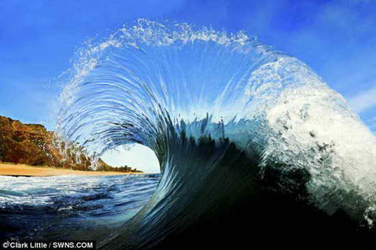 來自夏威夷歐胡島的克拉克稱,他經(jīng)常冒著生命危險去抓拍“完美海浪”。他說:“我熱愛海洋,我把全部時間和精力獻給海浪,尤其是像在瓦米阿灣海灘這樣的地方。我九十年代開始在那里從事拍攝活動,現(xiàn)在,我想盡可能多地拍攝那樣的美景。我經(jīng)常在黎明之前就下海,以在日出之時拍到巨浪內(nèi)部美感和力量的照片。我喜歡那些巨浪的力量和美感。由于這些經(jīng)歷,我能夠在自己不受到海浪沖擊的情況下拍到這些令人驚嘆的時刻,當(dāng)然,我有時也會遭到海浪的撞擊!