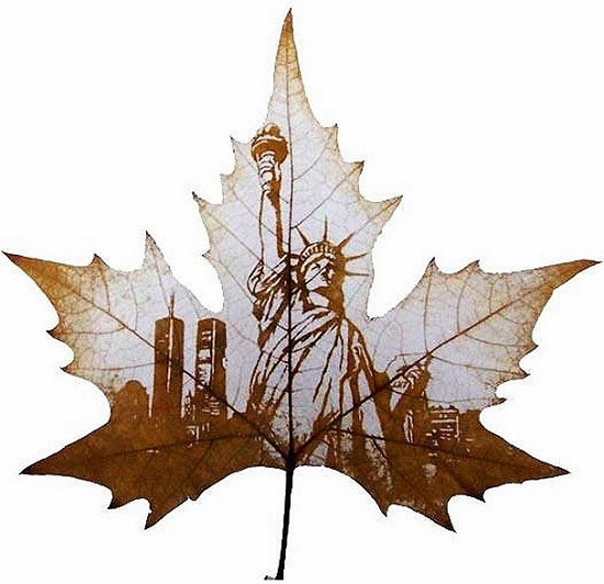 藝術(shù)家在葉子上畫名人