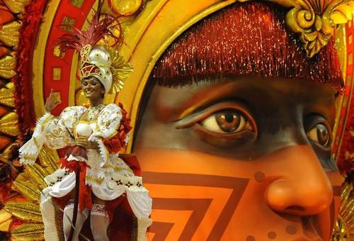 2月15日在巴西里約熱內(nèi)盧狂歡節(jié)上,一位來自于Salgueiro桑巴學(xué)校的表演者