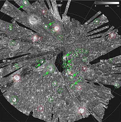 Mini-Sar發(fā)現(xiàn)的北極附近的40多個隕坑里的水冰寬度不等,直徑從2公里到15公里之間。盡管不能測出隕坑的深度,但科學家說,這些水冰至少應該在2米厚以上,才會讓月船一號測出。