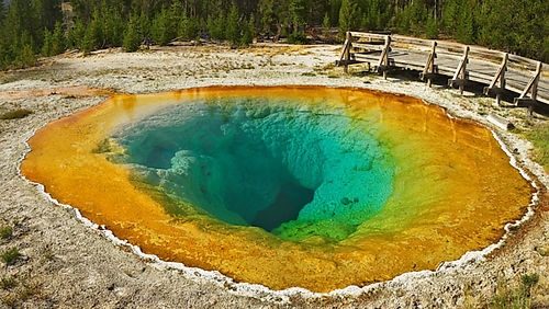 世界自然遺產(chǎn)美國(guó)黃石公園是上帝賜給美國(guó)人民的一顆明珠,乃美國(guó)人民所珍愛(ài),如果僅以山的雄奇,樹(shù)木與動(dòng)物的多樣性來(lái)看,黃石公園其實(shí)不如中國(guó)的景色,但黃石公園的奇,不僅僅在于它的眾多瀑布更在于它的地?zé)崞嬗^,大自然用水火,冰風(fēng)在這里精雕細(xì)琢,孕育了它迷人的景色,山上的土壤含鐵,氧化后發(fā)黃,那些沒(méi)有植被覆蓋的山頭便呈現(xiàn)出黃,白各種層次豐富的顏色,遠(yuǎn)遠(yuǎn)看去,甚為壯觀,“黃石”便由此得名。
