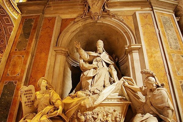 教堂里到處是精美的雕塑。大部分的雕塑都被放置在柱體上一個龕似的結構內(nèi),在柱體兩側的直線與上方的圓拱構成的空間中,精美的大理石石雕塑呼之欲出,連服裝的質(zhì)感都能被人感覺得到,真是太不可思議了。