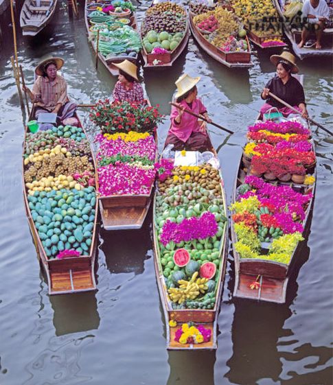 泰國水上市場,是泰國著名旅游景點(diǎn)之一。在這里可以購買各種水果、小食、衣物和精美的工藝品,見到世界各國的游客,領(lǐng)略泰國的人土風(fēng)情和文化。每個清晨與黃昏,修長的長尾小船載著用來買賣的鮮果時蔬、吃食雜貨徜徉在湄南河上。大大的斗笠下面,是人們平和的笑臉,還有不諳世事的兒童在水中玩耍;而出家人也劃著小船,依照佛家規(guī)定排列僧碗,沿船托缽。這就是水上市場最具特色的地方。