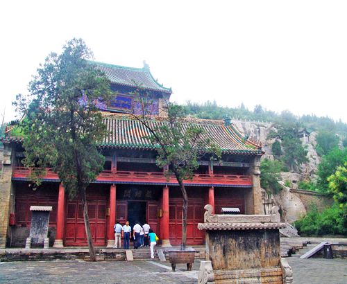 藏經(jīng)閣建于明萬(wàn)歷三年(1575年),面闊5間,高大伾山約2丈,分兩層,聲偉壯觀。閣內(nèi)有"千手千眼"觀音像,高I丈3尺,左右各有六雙手。