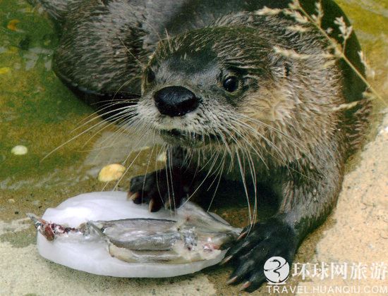 新澤西州西奧蘭治動(dòng)物園的一只水獺拿冰鎮(zhèn)魚當(dāng)零食。