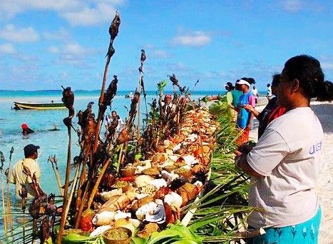 該國(guó)傳統(tǒng)用餐方式乃保留原始的手抓法,不使用刀餐湯匙等餐具,客人席地而坐,地上鋪滿林投葉編制而成的手工席子。