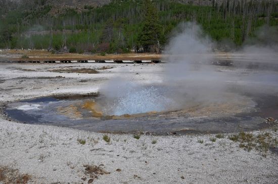 黃石公園的熱噴泉為世界之最,人們統(tǒng)計出有1萬多處溫泉、泥泉和300多個定時噴發(fā)的間歇泉!尤其是間歇泉,更是黃石的驕傲。因為全世界其他地方所有的間歇泉加起來,其總數還不及一個黃石公園來得多。上百個間歇泉噴射著沸騰的水柱,冒著滾滾蒸汽,好似倒轉的瀑布,它們從火熱而黑暗的地下世界不時噴涌而出。
