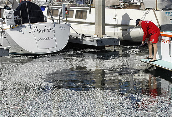 美國加州海灣突現(xiàn)數(shù)百萬條死魚