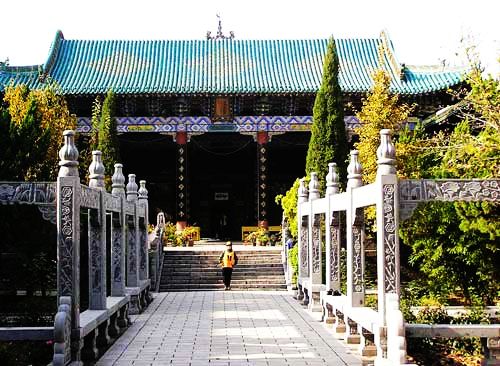沁陽北大寺位于沁陽市老城區(qū)西北部,創(chuàng)建于元至正年,明嘉靖四十年重建,清代增建,F(xiàn)存廈、殿、廳、堂與附屬房屋八十余間,占地3100多平米。主體建筑呈軸對稱布局,三進(jìn)三段,內(nèi)存明清碑刻通,軸線建筑自前而后體量與高度逐漸增加,分別以孔雀藍(lán)、綠、黃三彩琉璃瓦件飾頂。廈殿設(shè)門二道,前置柵欄門,中設(shè)棋盤門。過廳為單檐懸山頂,兩山半穿斗梁架間飾以壁畫。過廳之后為禮拜殿,由客廳、前后兩重拜殿及窯殿組成,其建筑間均有泄水牽搭,構(gòu)成一體,縱深達(dá)36米?蛷d為卷棚歇山頂。拜殿由兩座建筑組成。前殿為單檐歇山頂,后點為單檐懸山頂,五彩重昂斗拱,拱眼壁飾以壁畫,殿內(nèi)梁、檁、柱、枋用材碩大,雕梁畫棟,瀝粉貼金,富麗堂皇。窯殿(主殿)面闊三件,進(jìn)深一間,店內(nèi)三室頂部分砌三個穹窿頂。殿頂為亭塔式與樓閣式相結(jié)合,飾以琉璃件十字脊,獸吻達(dá)70多個,檐下鑲嵌琉璃枋,拱及垂蓮柱,色彩繽紛,玲瓏多姿,巍巍壯觀,為我國伊斯蘭古建筑的精華之作,具有較高的歷史、文化價值。