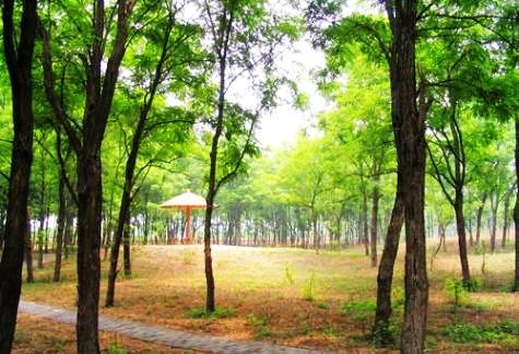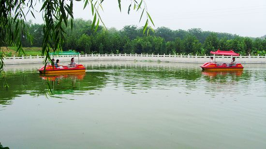 百花園,位于槐林北部,占地 300 畝,引進(jìn)栽植各類名貴樹(shù)木 300 多種,喬木、灌木、針葉、闊葉、色葉等應(yīng)有盡有。根據(jù)植物種類設(shè)置 50 多個(gè)專業(yè)園。入口處的兩棵千年紫薇古樹(shù)樁,形似蟠龍,生機(jī)昂然。 7 月花開(kāi),紫色的花絮掛滿枝頭,像兩個(gè)彩色大傘,游人至此無(wú)不駐足觀看稱奇。百花園中部是一片占地 30 畝的人工湖,湖邊有靈霄游廊。湖中堆一座龜龍靈山,數(shù)只木舟泊于山腳下。與湖水相連自西向東是一條忽寬忽窄的循環(huán)河道,把百花園分割成內(nèi)園和外園兩部分,狹窄處有拱橋相連。內(nèi)園像一個(gè)秀麗的小島,高低不平,錯(cuò)落有致。其中有:紅楓林、情侶林、松柏崗、杏花灣等小景點(diǎn),游人不但可以岸邊憑欄垂釣或蕩舟水中,也可登島觀賞美景。
