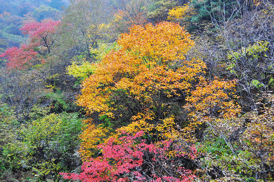與以往紅葉節(jié)不同的是,今年的堯山紅葉節(jié)增添了堯山新索道等新亮點(diǎn)。乘索道賞紅葉,遠(yuǎn)山近坡,滿山色彩豐富。鮮紅、橘黃、金黃、粉紅、豆綠,顏色層次分明,梯次分布,瑟瑟秋風(fēng)中,滿山紅葉看似紅霞,排山倒海般向您而來。