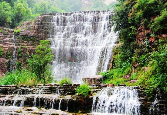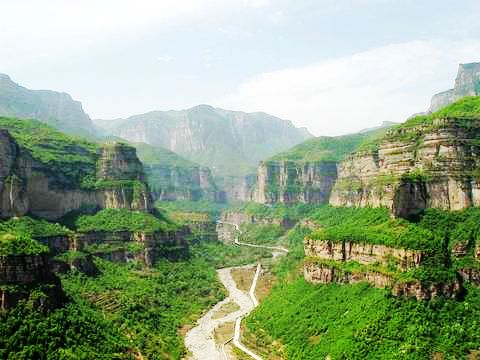 太行大峽谷地處河南省西北部,南太行山東麓的林州市西側(cè),南北長100華里,東西寬2.5華里,海拔800——1739米,相對高差達(dá)1000米以上,境內(nèi)斷崖高起,群峰崢嶸,陽剛勁露,臺壁交錯,蒼溪水湍,流瀑四掛,峰、巒、臺、壁、峽、瀑、嶂、泉姿態(tài)萬千,是“北雄風(fēng)光”的典型代表,號稱“太行大峽谷”
