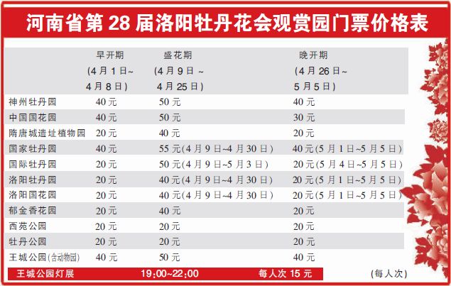 2010年洛陽牡丹花會觀賞公園門票詳細(xì)價格