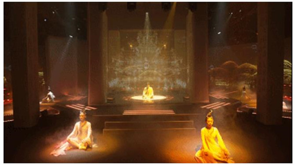 方紗與環(huán)紗從舞中升起又落下,配合演員在變幻多端的多媒體中展現(xiàn)出極富表現(xiàn)力的舞蹈,整部短劇時長約為30分鐘,在起承轉(zhuǎn)合中描繪主人公經(jīng)歷的人生問道、尋道、悟道、知道四個階段。