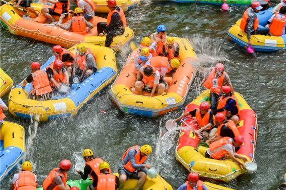 來到堯山,漂流值得一玩。深水處可激流勇進驚險刺激,淺水處可靠岸蹚水,坐著皮劃艇在山水中穿行,將美景盡收眼底。漂流中自然少不了打水仗,記得帶好水盆水槍,和朋友們“大戰(zhàn)一場”!