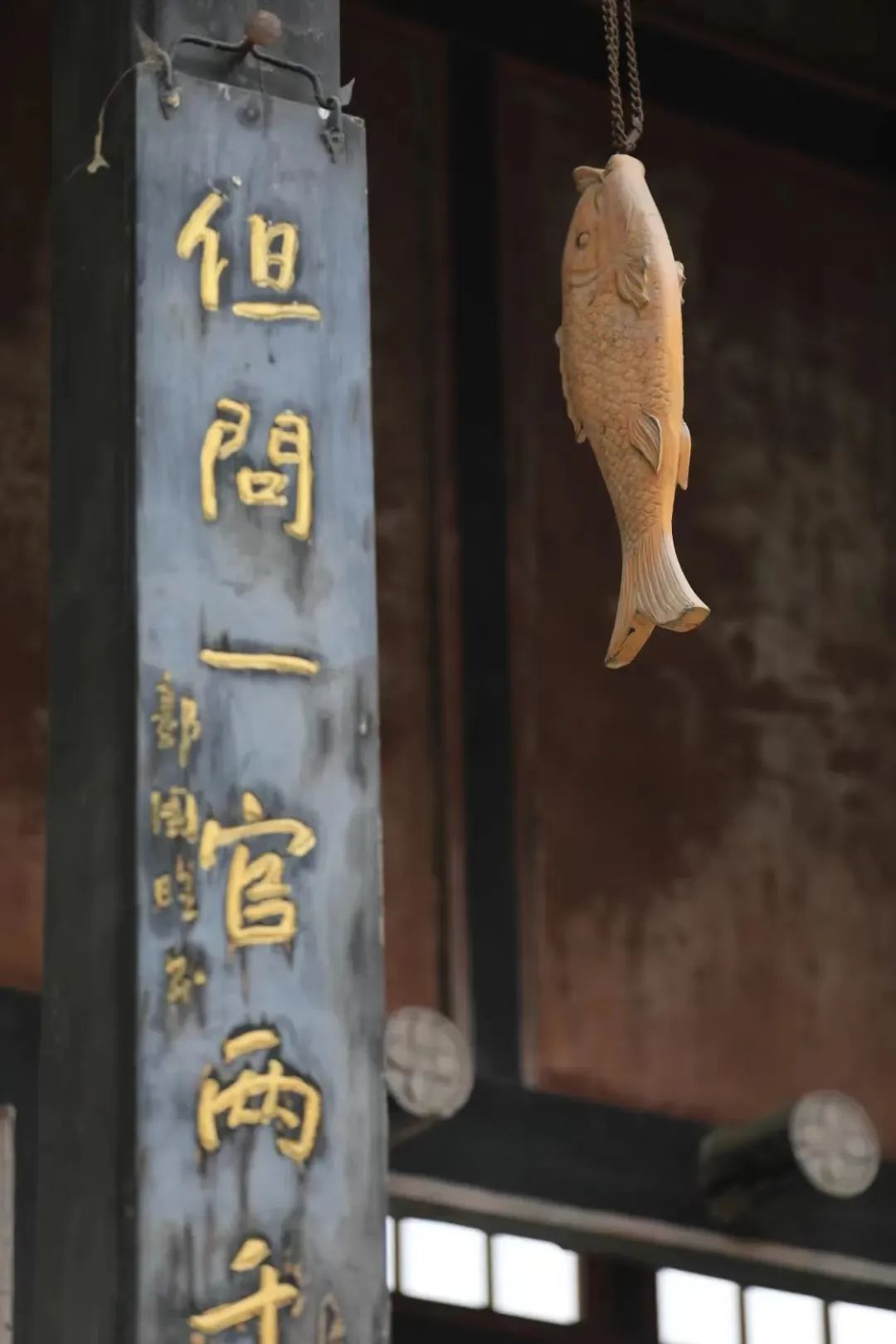 三堂門口有個特殊的“裝飾物”——一條木魚。它被稱為“羊續(xù)懸魚”,曾經有位叫羊續(xù)的郎官在到任南陽太守后,有下屬送來一條白河鯉魚,他執(zhí)意不收又推讓不過,最后只能收下。下屬走后他將魚掛在屋外,直到風干成了魚干都沒有食用。
