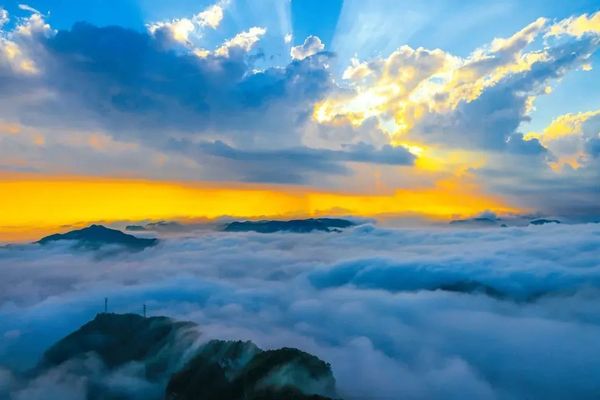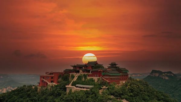 仙霧環(huán)繞、群山如畫、落日晚霞絕美