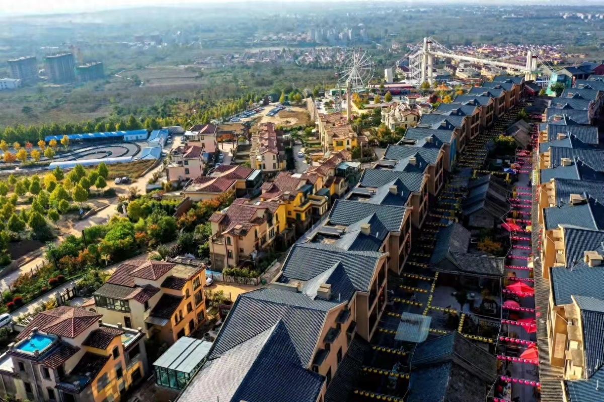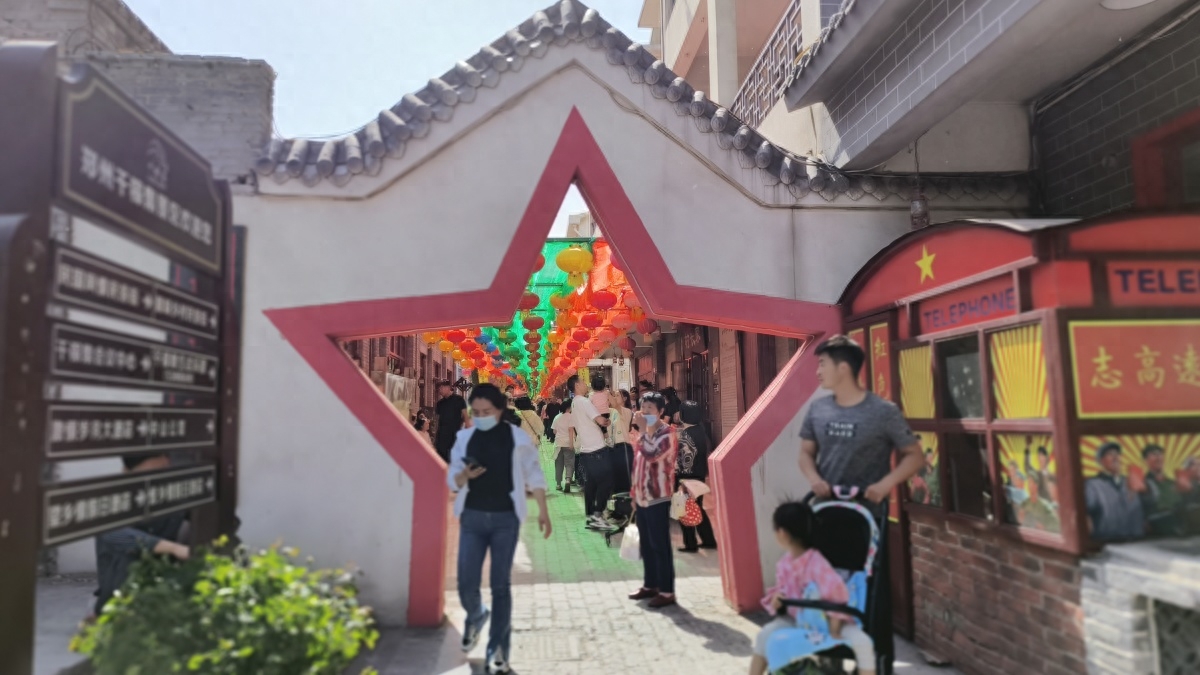 千稼集民俗文化街坐落在西泰山山頂。剛走進這條街,是兩排灰白相間、3層高的徽派建筑。整條街環(huán)西泰山而建,呈馬蹄狀布局。“它主要打造‘中原民俗歷史文化體驗地’,以‘鄉(xiāng)土的味道,年輪的烙印’為文化核心,包含紅色文化民俗街、民國風情民俗街、原味鄉(xiāng)村民俗街三個場景式還原版塊。”泰山村集體企業(yè)——河南西泰山實業(yè)有限公司工作人員顏涌濤介紹,文化街全長2公里,以經(jīng)典歷史場景還原再現(xiàn)的形式,展現(xiàn)中原地區(qū)上世紀20至70年代間的風土民情。